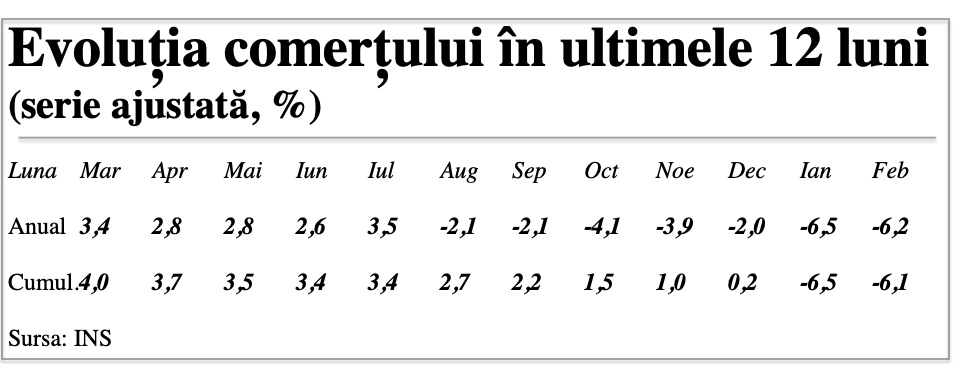 - Comerțul, scădere lunară dar peste nivelul cumulat de anul trecut