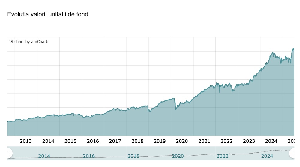 Performanta adusa de fond investitorilor, masurata ca si variatie a valorii unitatii de fond, a fost de +6,7% in ultimele 12 luni incheiate la 11 iulie 2025, intr-o perioada dificila pentru economie si societate in Romania. Investitia la bursa este recomandata pe termene lungi. Fondul a generat un castig pentru investitori de +75,4% in ultimii trei ani si de +304,4% in ultimii zece ani incheiati la 11 iulie 2025.