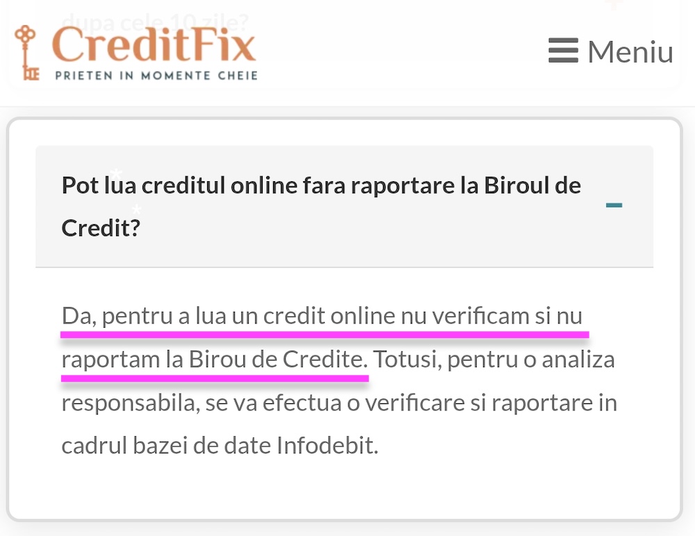 Flexcredit afirmă, că „totuși, pentru o analiză responsabilă, se va efectua o verificare și raportare în cadrul bazei de date Infodebit”. Interesant este că Flexcredit este participant și la Biroul de Credit.