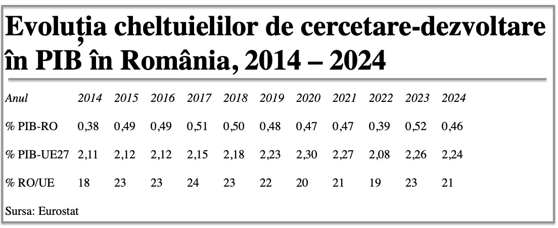 România a înregistrat în anul 2024 cea mai scăzută pondere în PIB a cheltuielilor pentru cercetare-dezvoltare dintre țările UE, potrivit datelor comunicate de Eurostat. Cu un procentaj de 0,46%, în... detalii