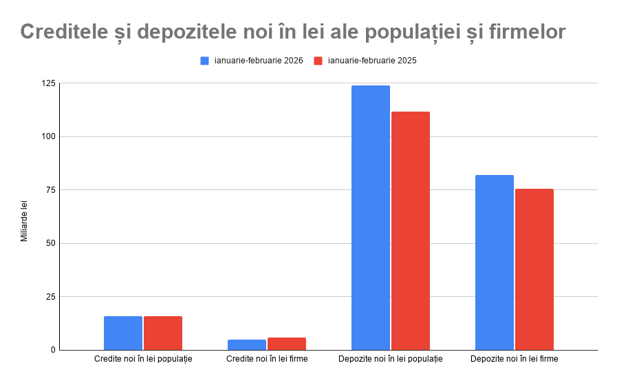 Creditele noi în lei acordate de bănci populației în primele două luni din 2026 au însumat 15,8 miliarde lei, aproape la fel ca în aceeași perioadă a anului precedent, când... detalii