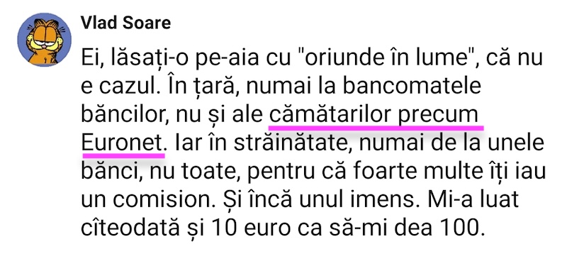 Am întrebat și noi reprezentanții Euronet din România, care funcționează printr-un SRL din București care sunt comisioanele pentru utilizarea ATM-urilor, însă nu am primit răspuns. Vezi detalii, în acest articol din Reclamații Bănci:
