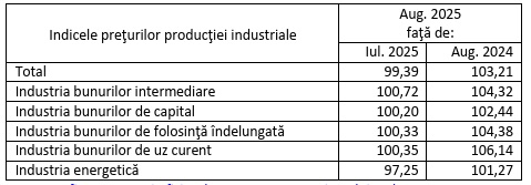 Indicele preţurilor producţiei industriale (IPPI) a consemnat pe august 2025 o ajustare de -0,61% față de luna precedentă, după creșterea semnificativă (+4,95%) din iulie, potrivit datelor comunicate de INS.